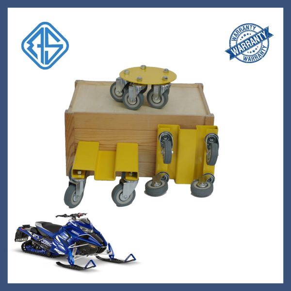 The snowmobile Dolly kit is a three-piece device that minimizes the gap rotation, thereby safely maneuvering the snowmobile in your storage area. As a set, this product has a load rating of 1000 pounds, with a solid steel plate design and hard rubber casters. The two front dolls have grooves for snowmobile skiing, with safety belts to prevent sliding.