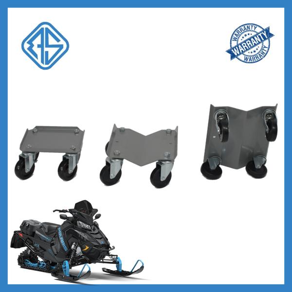 Strong, adjustable nylon strap. Three roller devices make the stored snowmobile easy to move. A set of 3 roller trolleys can carry 1500 pounds (682 kg). High quality 2 ½ Inch PVC universal casters can easily achieve a 360 ° rotation radius.